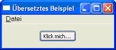 Hier sieht man, wie bei mir so ein nicht übersetztes Beispielprogramm mit einem Menü und einem Button aussehen könnte.